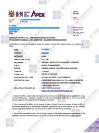 服務(wù)優(yōu)勢(shì):馬來(lái)西亞博特拉大學(xué)碩士畢業(yè),負(fù)責(zé)對(duì)接馬來(lái)西亞公立院校,為人熱情、細(xì)心有責(zé)任心,幫百分之98以上的中國(guó)學(xué)生成功申請(qǐng)到馬來(lái)亞大學(xué)、博特拉大學(xué)、理科大學(xué)、國(guó)民大學(xué)等世界級(jí)名校。